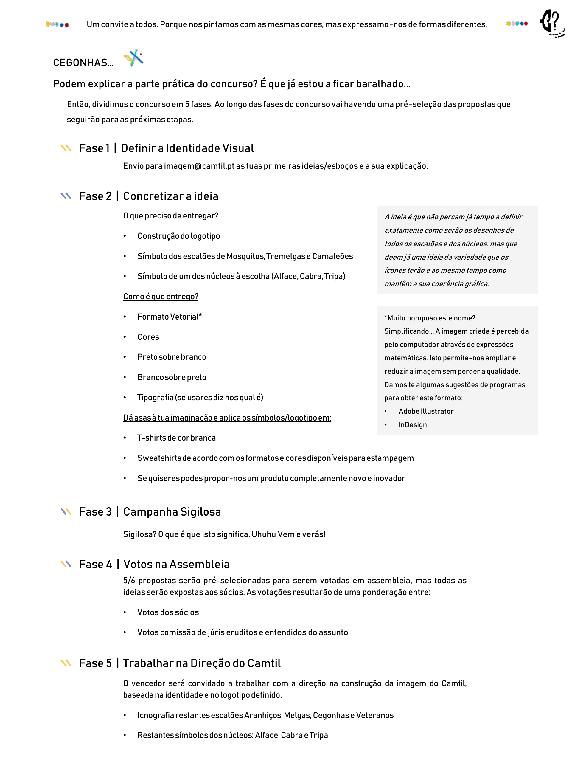 Agradecemos aos criadores desta proposta, que vão continuar a trabalhar com a direção do Camtil nesta imagem,